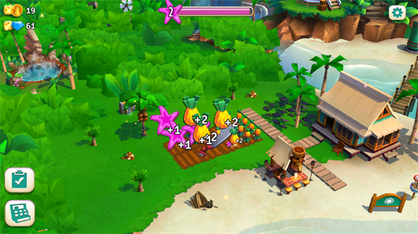 随着等级的提升,玩家可以采摘不同的果树,基础的有椰子树和芒果树等。这些果实不仅可以用来完成运输任务,还能为酒吧制作多种饮品,特别是椰子树的果实,玩家一定要及时采摘。